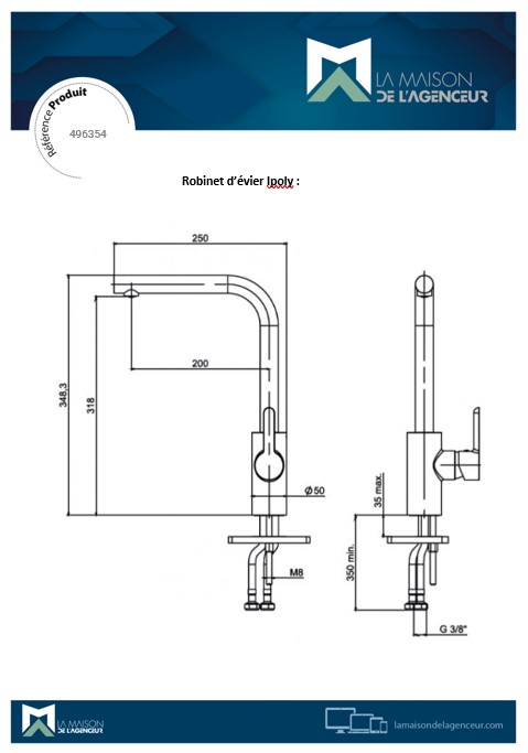 - Installation Facile : Adapté à un trou de 35 mm de diamètre dans le plan de travail ou l'évier, avec des tuyaux de raccordement de 50 cm (diamètre 3/8").