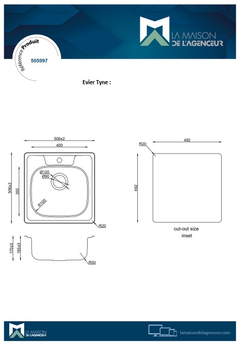 Découpe : 492 x 492 mm