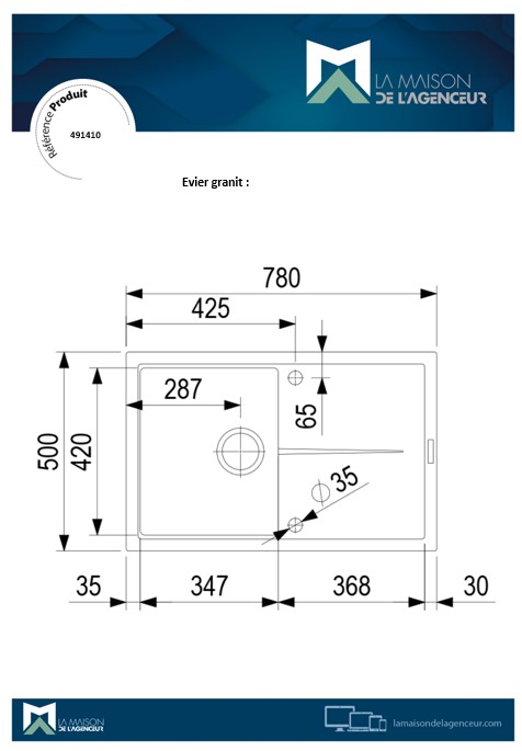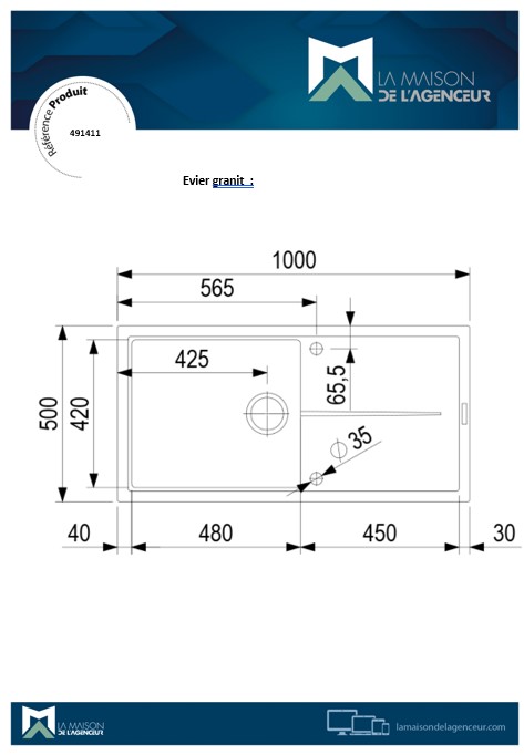 il est accompagné d'un trop-plein et d'un siphon extra-plat.