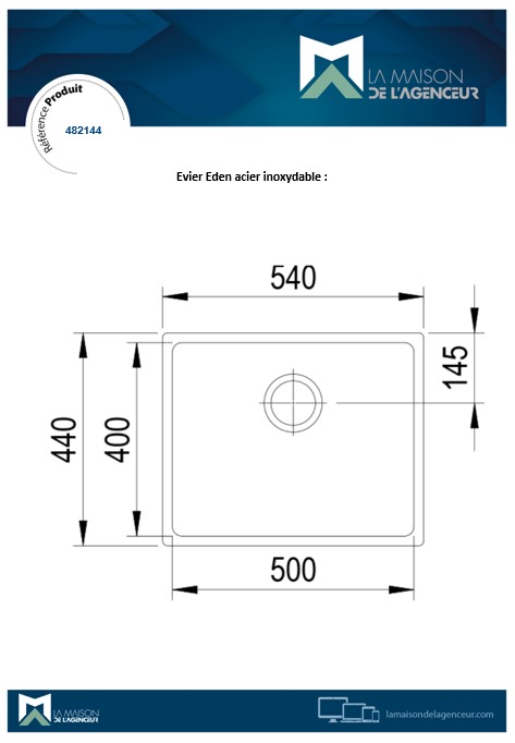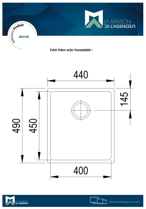 Évier Eden acier inoxydable.