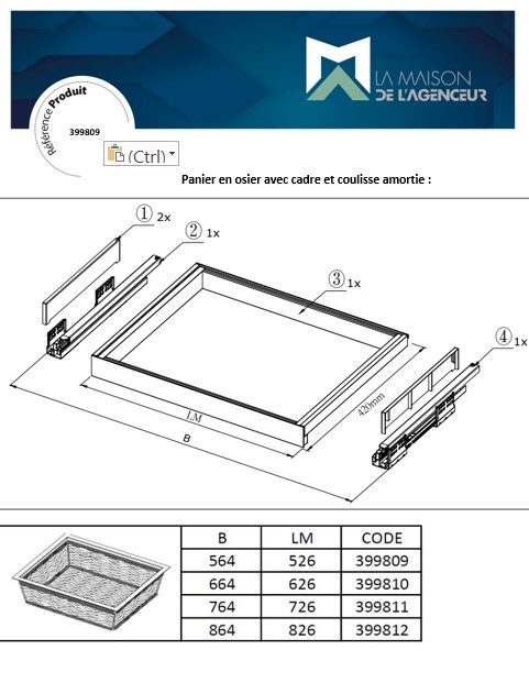 Structure fixe avec panier en imitation rotin avec coulisse cachée avec amortissement intégré.