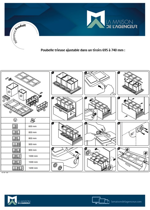 | Poubelle trieuse ajustable dans un tiroir de 695 à 740 mm de large |
